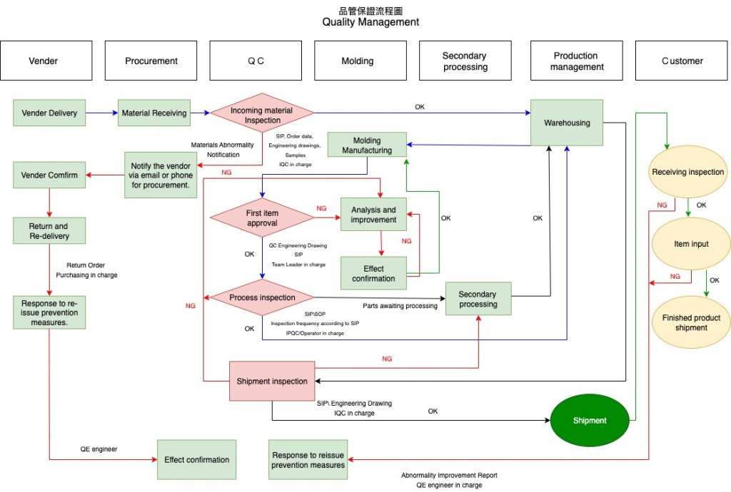 我們對塑膠射出件品質要求也十分重視,嚴格恪守品質管理流程。